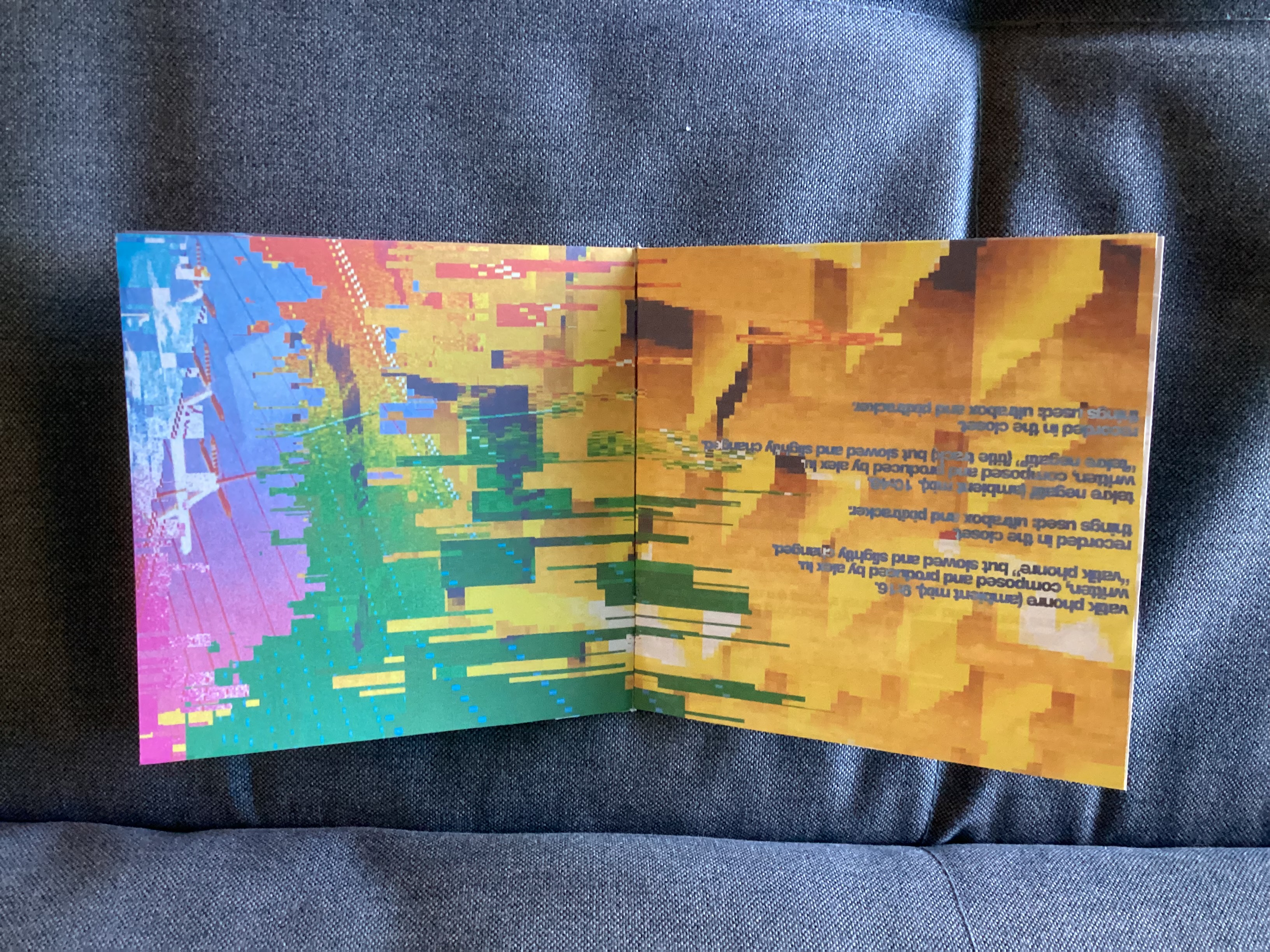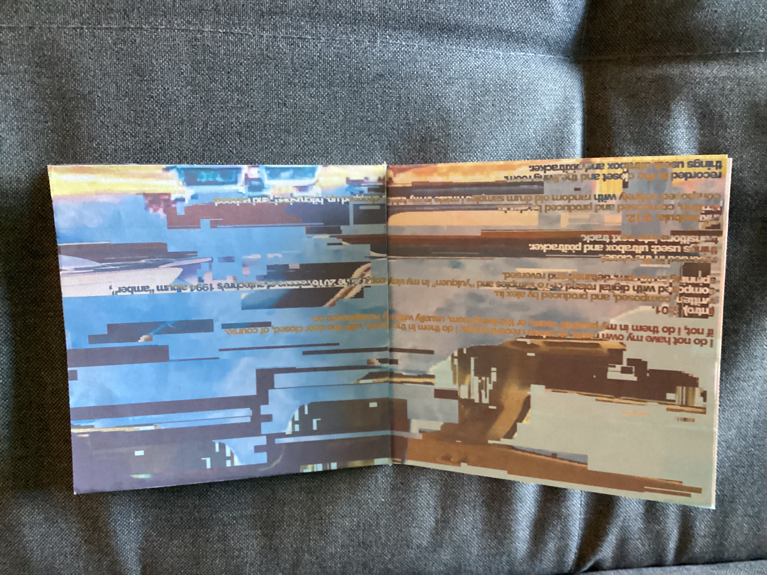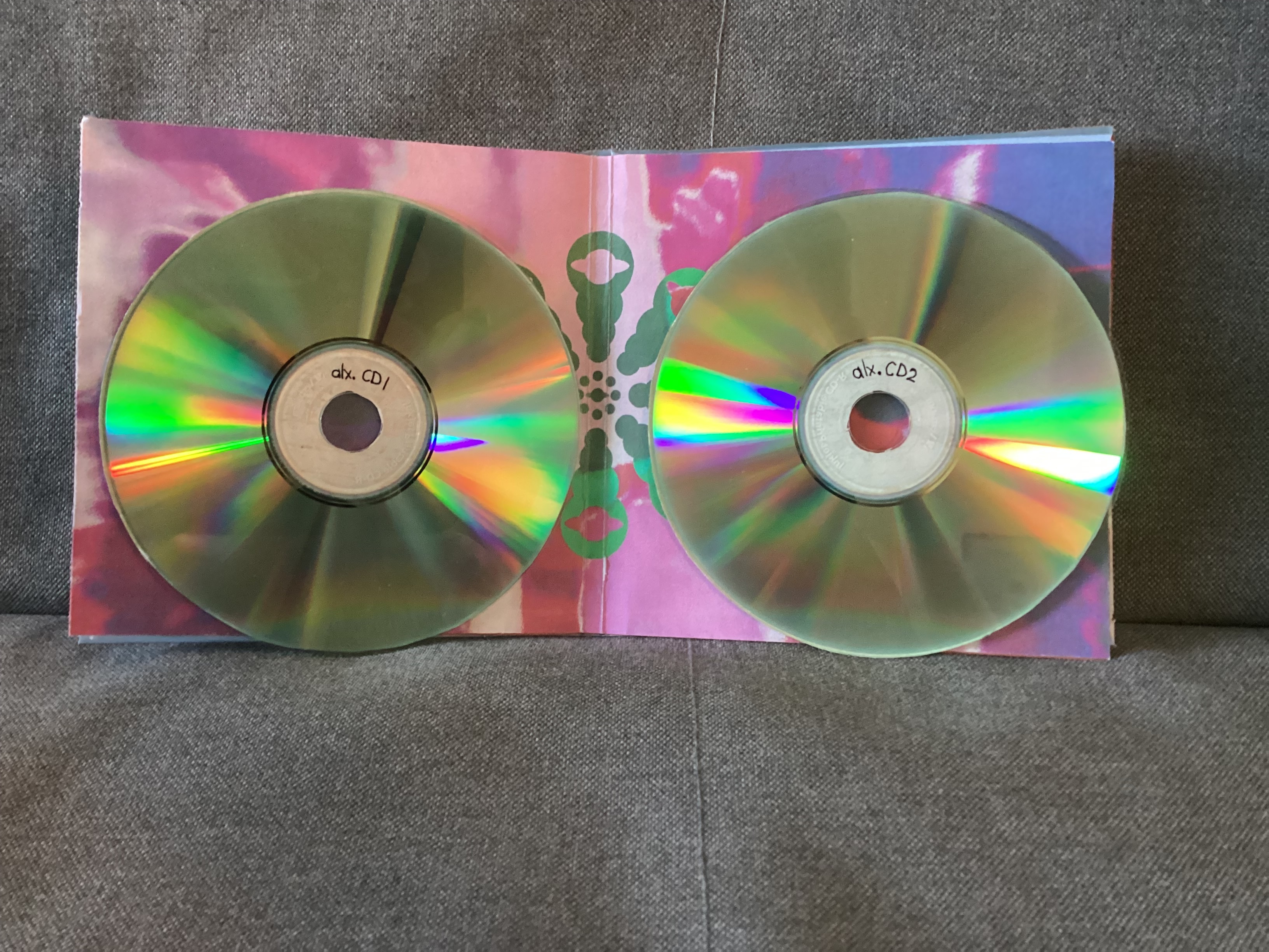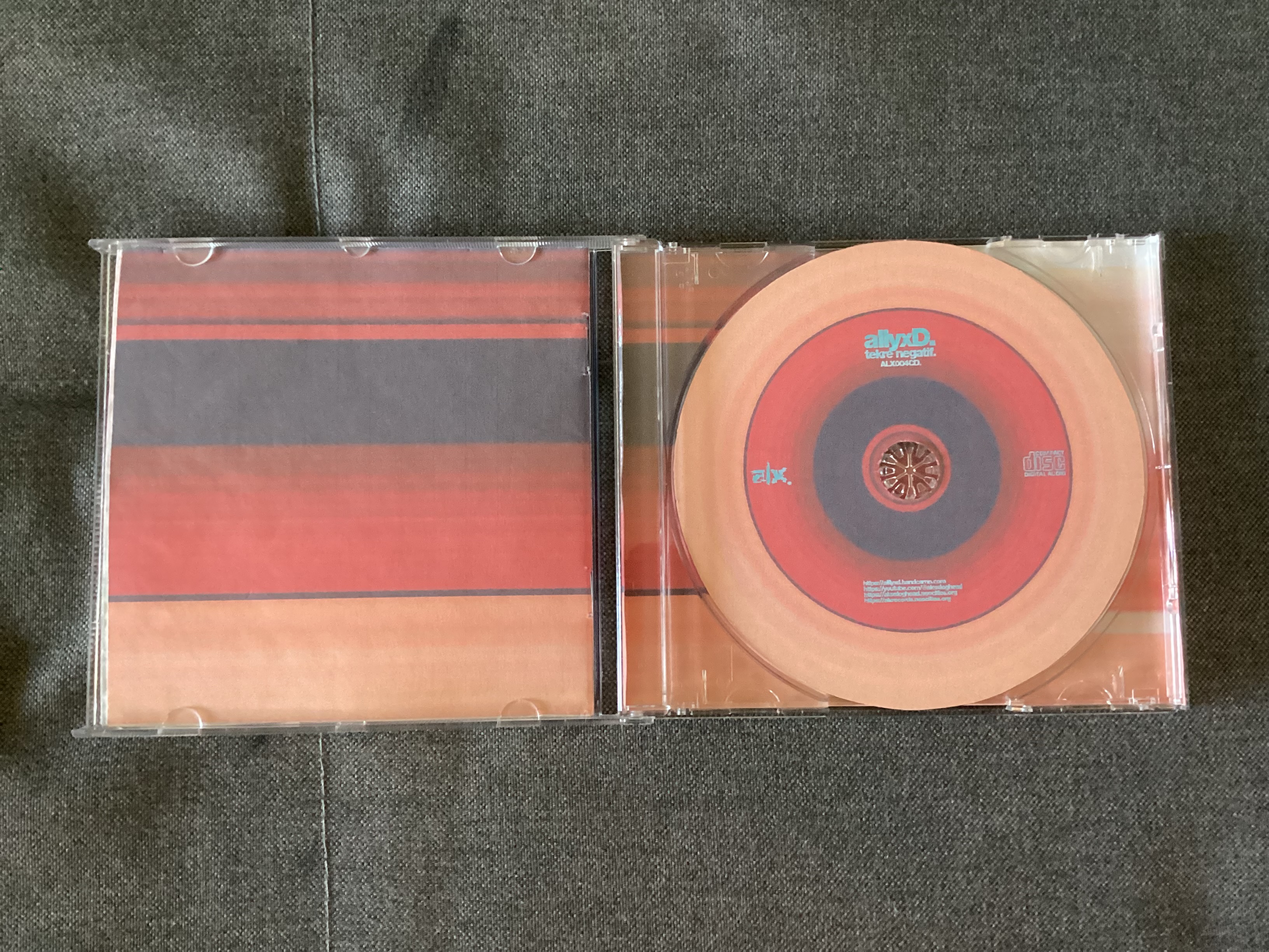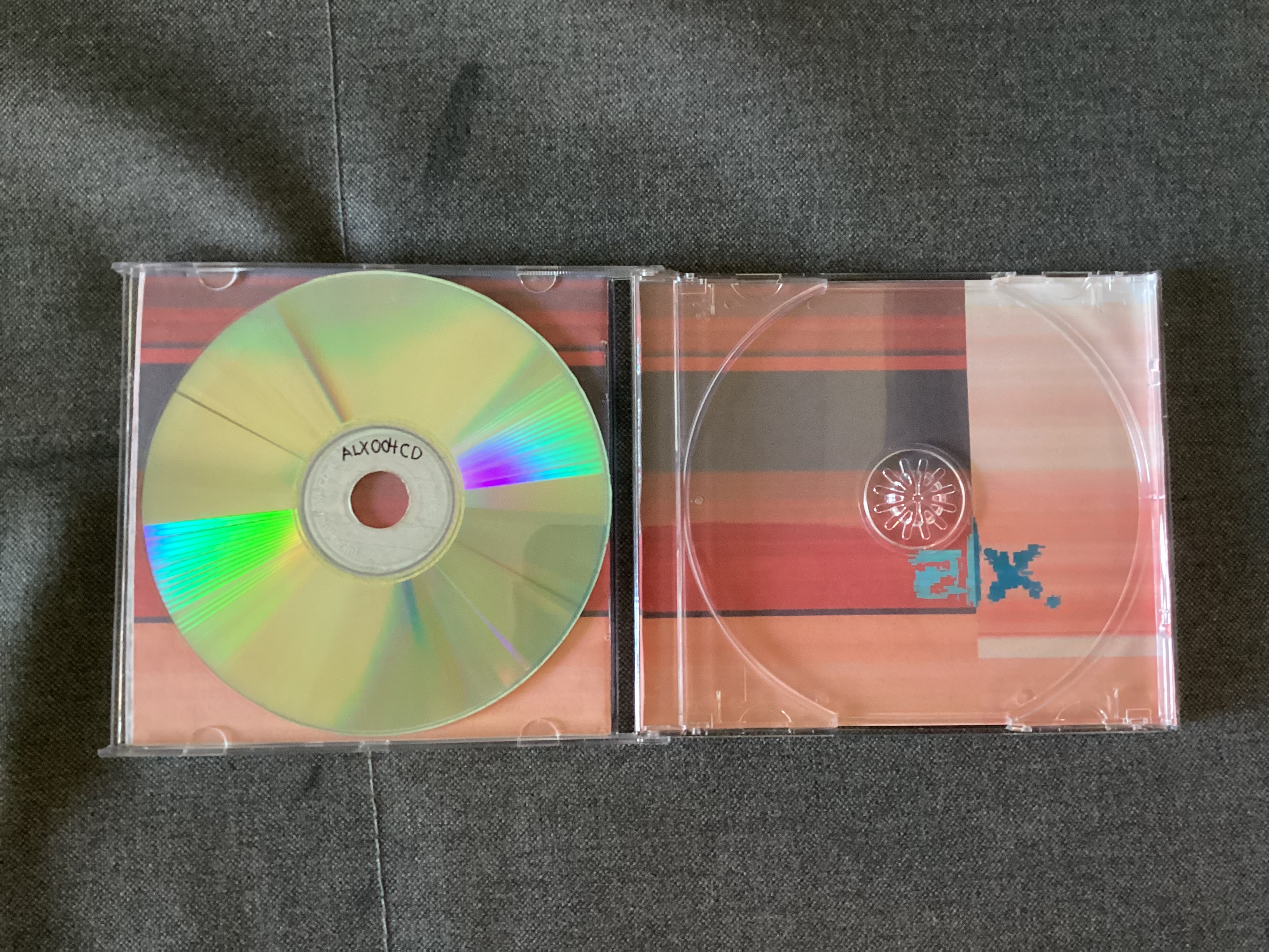 notes: first custom CD with a catalog number [ALX001CD]. artwork is inspired by sleeve artwork of boards of canada - tomorrow's harvest and some booklet pages of squarepusher - feed me weird things